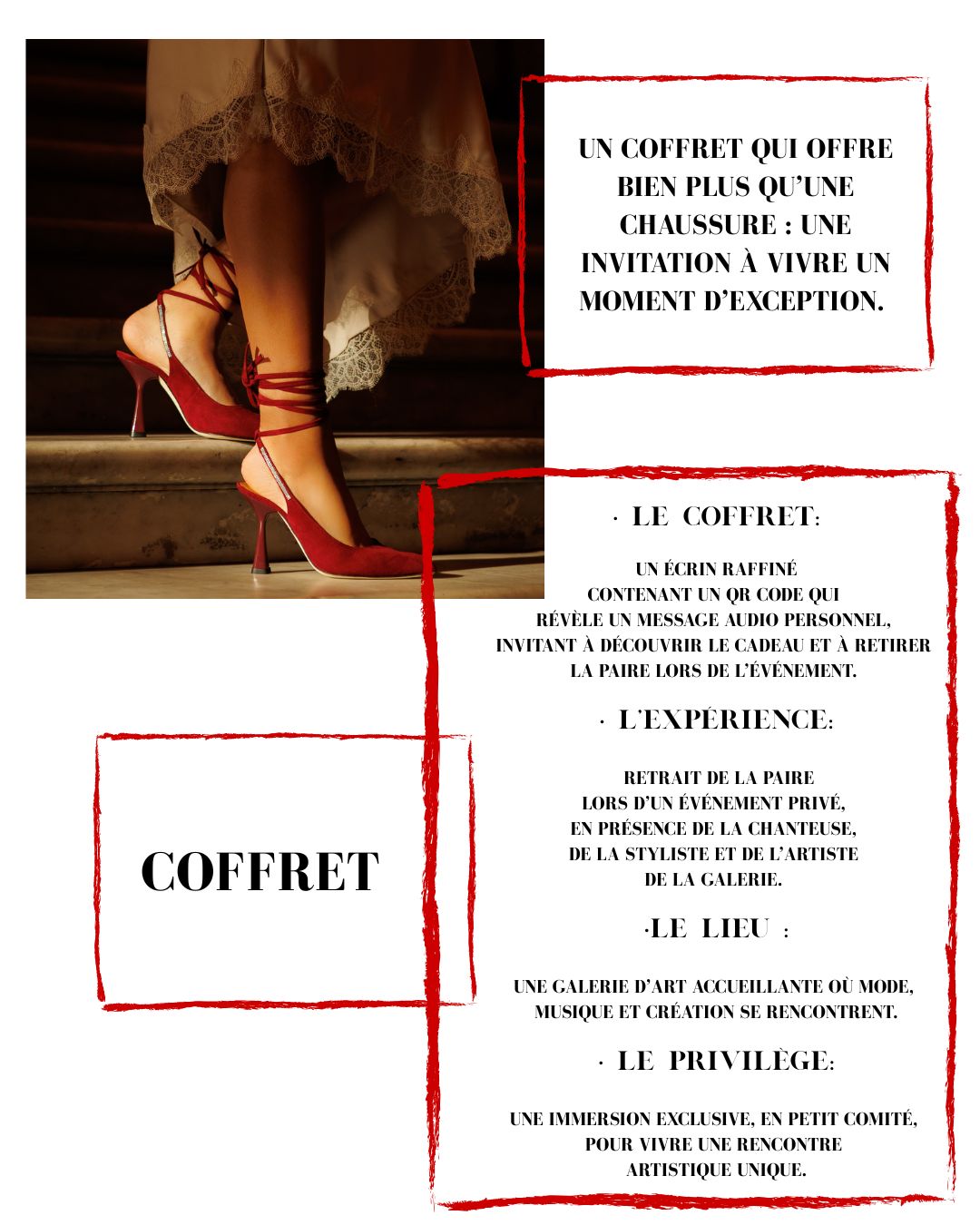 Chaussures en daim bordeaux avec lacet en daim incrusté de strass. Hauteur talon : 9 cm. Talon peint à la main. Semelle intérieure et extérieure en cuir véritable. Disponible du 35 au 42. Modèle en prévente exclusivement pendant un mois (date de fin le 18/12/2025) , livraison en mars 2026. Possibilité de recevoir…